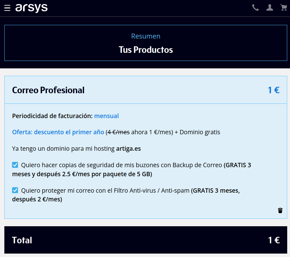 Ojear reseñas de arsys y contratar este plan: