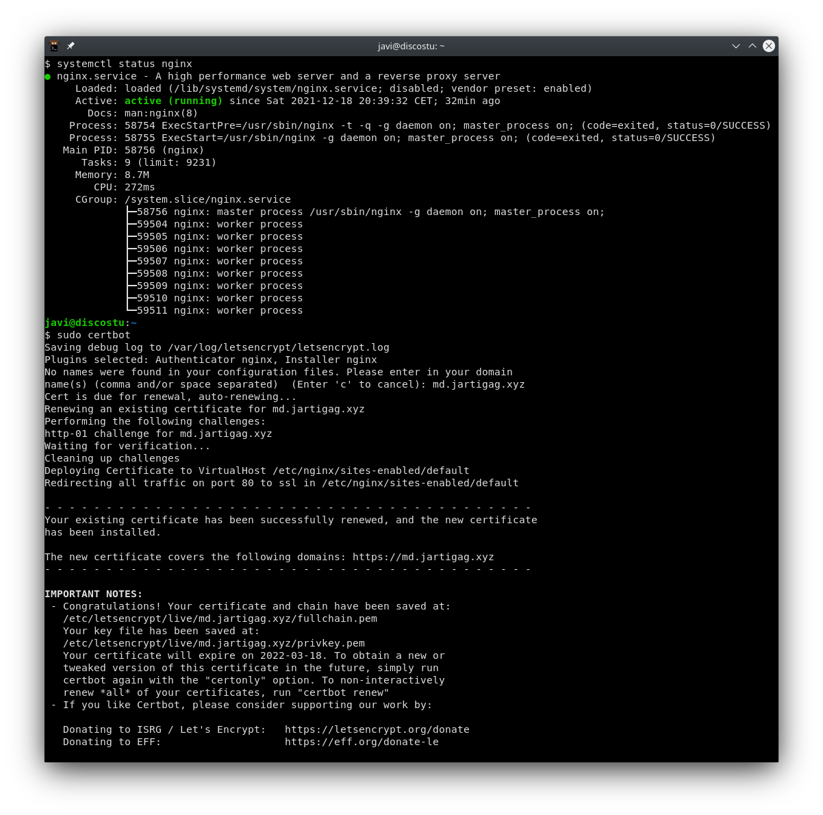 Con estos pasos previos listos y Certbot instalado, solo queda dejarle hacer su magia: