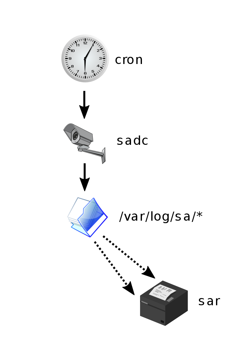 Volviendo la vista a Unix, encontré los programas que durante décadas han cumplido con esta tarea y siguen en ello. sar (system activity report), junto con el resto de comandos del paquete sysstat, te ofrece información muy completa sobre la carga del sistema: uso de CPU, RAM, procesos, escrituras/lecturas de disco, sockets, interfaces de red, etc. Lo que necesitas para determinar la salud de tu sistema.
